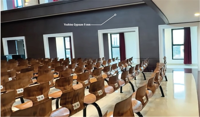 Untuk menciptakan ruang artistik, kreativitas dalam mengombinasikan material menjadi kunci utama. Yoshino Gypsum dapat dipadukan dengan berbagai produk lain sesuai kebutuhan desain. Seperti pada bangunan Gereja Reformed Injili Indonesia (GRII) di kota Batam, menggunakan pada seluruh bagian bangunan khusunya plafon dan dinding menggunakan papan gypsum Yoshino Board Reguler 9 mm, dan pada bagian altar menggunakan RB SHERA Floor Board 20 mm.