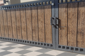 *Aplikasi RB SHERA Plank Brown Teak Shine Light Untuk Pagar Perumahan